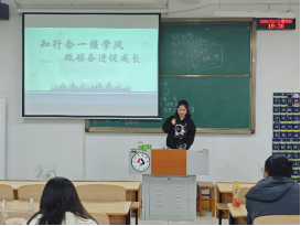 宣讲团成员结合自身成长经历,以“知行合一强学风,砥砺奋进促成长”为主题,通过鲜活案例深入阐释学风建设对个人发展、校园文化及社会进步的重要意义。强调2025年作为学校学风建设的关键年份,同学们应力争实现课堂出勤率100%,不迟到、不早退,做好课堂笔记,严禁出现考试不诚信等现象,呼吁大一学生树立正确的学习观,养成好良好的学习习惯。