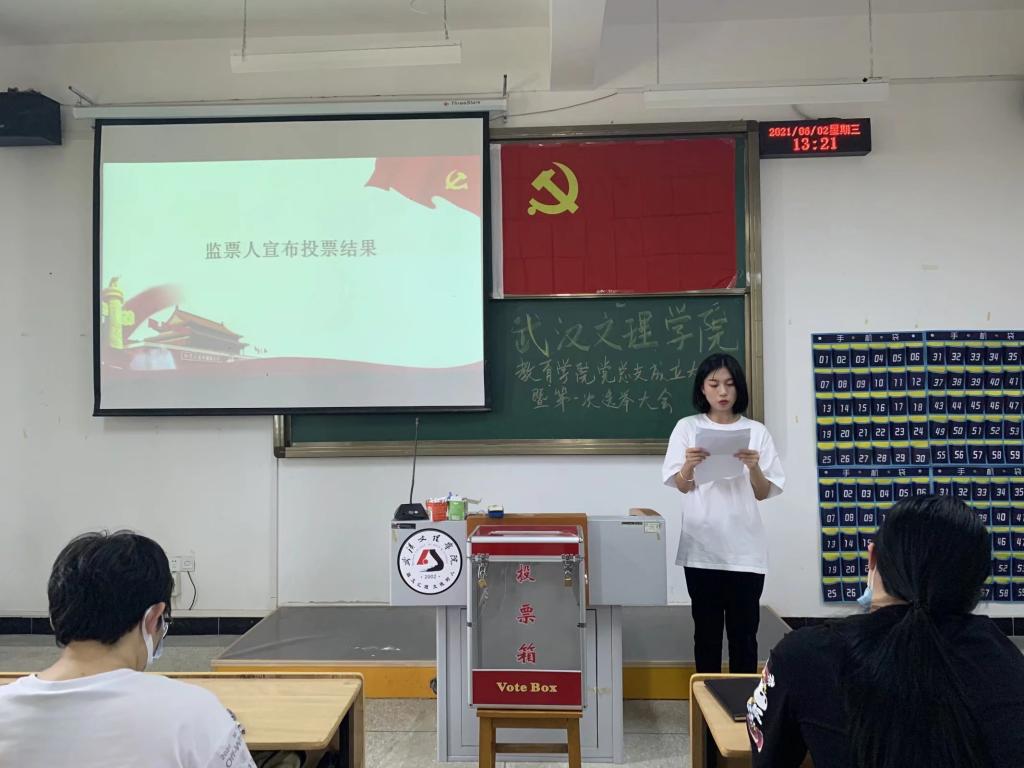 会议在雄壮的国歌声中开幕,刘超同志给全体党员宣读了武文理党〔2021〕5号《关于同意成立304永利集团党总支部的批复》文件。在大会选举环节,经介绍候选人预备人选简历后,根据党章规定,全体党员按照民主、公正、透明的原则,采取无记名投票方式和差额选举办法,选举304永利集团党总支委员会委员、304永利集团教职工党支部委员会委员、304永利集团学生党支部委员会委员。