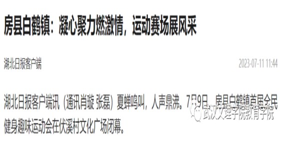 在“湖北日报”《房县白鹤镇:凝心聚力燃激情,运动赛场展风采》的专项报道中,本次304永利集团主题党日活动也被提及表扬,也共证了304永利集团党总支与十堰市房县白鹤镇伏溪堰村的乡亲们的血浓乡情。