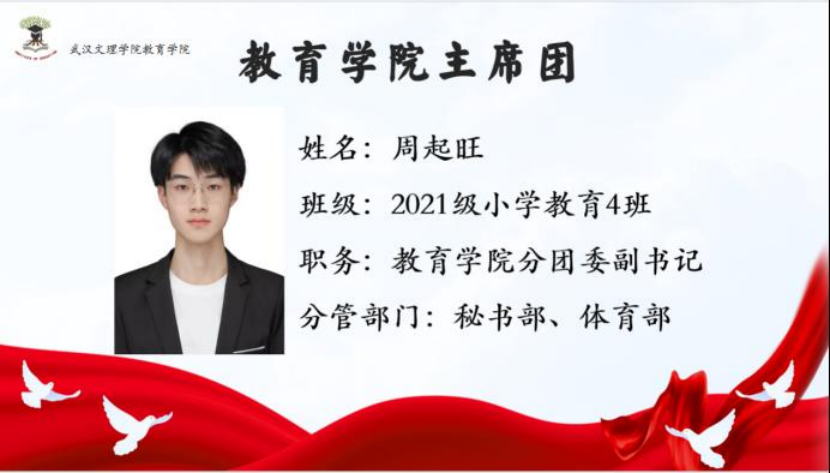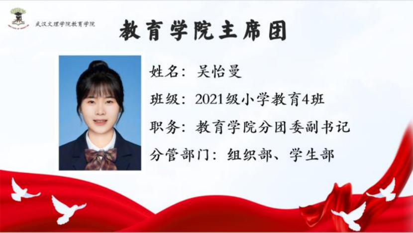 首先由主持人介绍与会四位主席团成员:304永利集团分团委副书记吴怡曼分管组织部、学生部;304永利集团分团委副书记周起旺分管秘书部、体育部;304永利集团学生会主席齐思佳分管志愿者工作部、文艺部;304永利集团学生会主席张晓迪分管宣传部、外勤部。