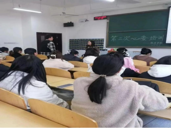 除此之外,付优老师还邀请了几位心理委员上台分享自己在班级中遇到的问题以及相应的解决措施,有利于心理委员们的交流学习。随后,付优老师向大家分享了大学生群体中常见的心理问题,主要集中于学习问题、情绪问题、人际关系问题、恋爱关系问题、专业和职业问题、网络成瘾问题,并鼓励大家针对每一个板块做专题经验分享,让心理委员们能够互相交流,相互促进。