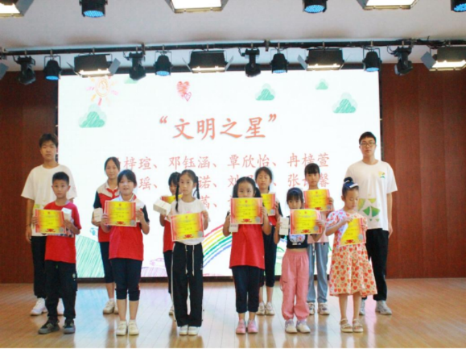 颁奖环节中,“文理七彩少年教育服务队”的志愿者们为参加七彩假期活动的学生们颁发了“自强、学习、文明之星”奖状及奖品,表彰他们在活动期间的表现。同时,与会领导们也为志愿者们颁发了“优秀班主任、优秀教师、宣传先进工作者、服务先进工作者”的荣誉证书,对他们的付出表示肯定和感谢。