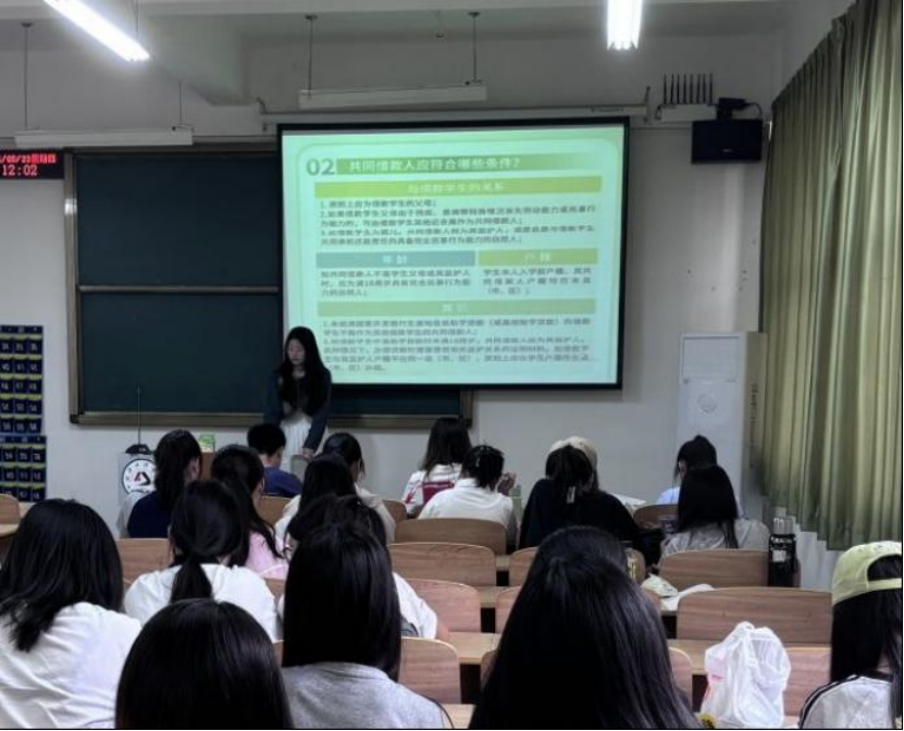 第二阶段,由于23级大一学生刚刚步入大学校园,对于资助政策了解较少,因此宣传小组经讨论后决定对23级学生进行走班宣讲。四位宣讲人详细介绍了国家及学校提供的各类资助政策,包括奖学金、助学金、助学贷款等政策。他们结合实际案例,深入浅出地讲解了申请流程和评审标准。
