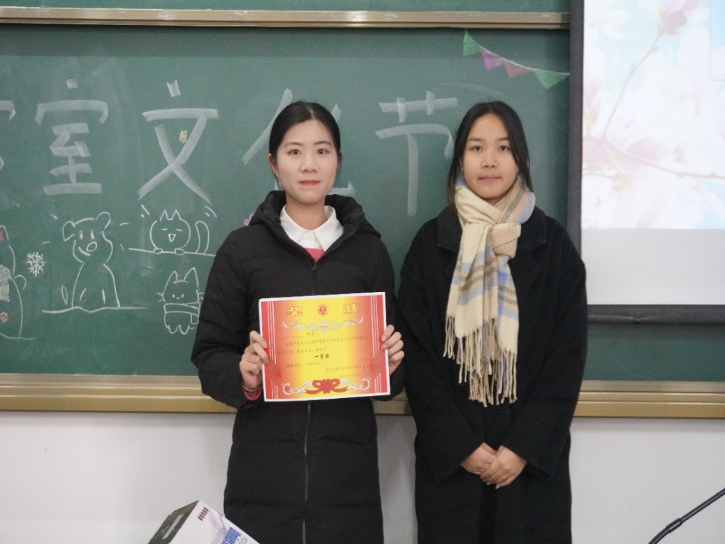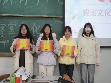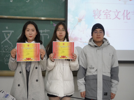 经过参赛选手的认真演绎和展示,与会评委们的公正评选,最终由以下6个寝室获得此次寝室文化节的前三名: