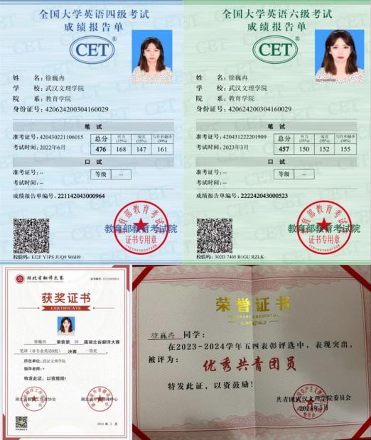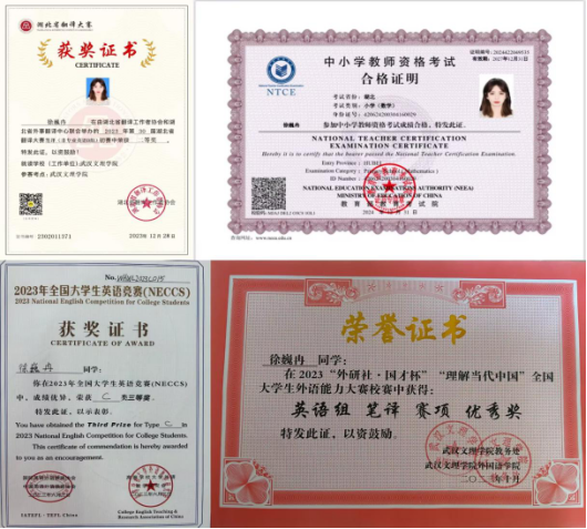 2023年10月在“外研社一国才杯”全国大学生外语能力大赛校赛中荣获英语笔译组“优秀奖”