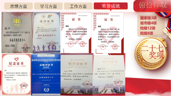 除此之外她还积极参加各类能力提升考试,目前已获得英语四级、全国计算机等级考试二级、普通话二级甲等证书。