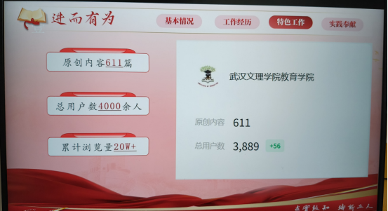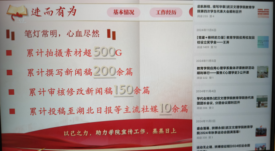 在学院文化建设中,张坤杰主动争当“文化播种人”。运营学院公众号时,发布原创内容600余篇,积累用户4000余人,总浏览量突破20万;为适应学校发展步伐,他将宣传重心转向网站建设,深度参与页面更新与设计,把院训与特色活动融入首页展示,全方位展现学院的专业底蕴与人文温度。除此之外他还创新策划了【党建+】【勤奋育果实】两大特色栏目,前者发布30余篇文章,聚焦优秀学子成长事迹,让榜样力量可感可学,营造比学赶超的良好氛围;后者推出百余篇内容,定格三下乡实践与志愿服务的温暖瞬间,生动诠释志愿精神在文理学子身上的鲜活模样。
