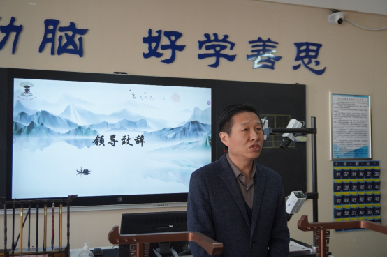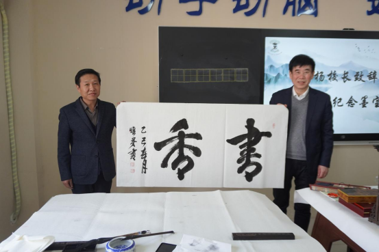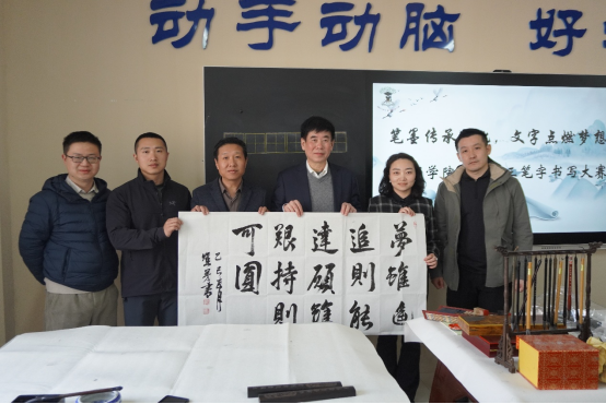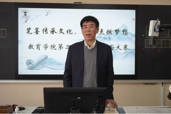 杨灼芳教授在比赛现场为大家题词,笔力遒劲,气韵生动,瞬间将现场氛围推向高潮。题词后杨校长表示,书法是中国传统文化的重要组成部分,希望同学们不仅追求书写技巧的提升,更要深入理解书法背后的文化内涵,将书法艺术与文化修养相结合,以书法为媒,传承和弘扬中华优秀传统文化。