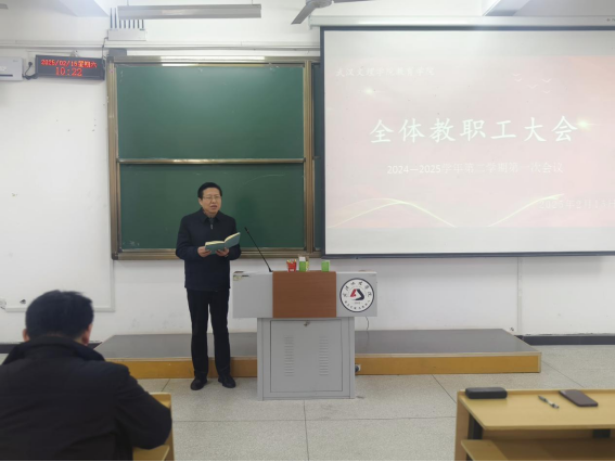 为进一步锚定育人目标,明确新学期各项重点工作,确保教学活动有序开展,2月15日上午304永利集团在5栋125召开新学期首次教职工大会。304永利集团院长王仕杰、总支书记兼行政副院长陈龙、教学副院长贺霞、教学副院长戴戈,各系部教师以及全体辅导员参加本次会议。