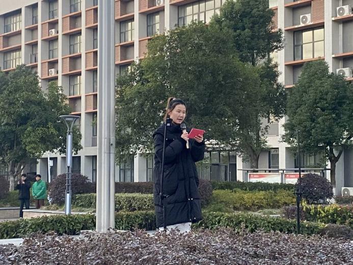 接下来由来自24级小学教育1班的陈若萱同学作为学生代表进行主题为《不忘历史,奋勇向前》的国旗下演讲,她在演讲中阐述了作为新时代青年,我们要不忘历史,奋勇向前;要树立正确的价值观,将历史教训转化为前进动力;要敢于担当社会责任,传播正能量。铭记历史长河中的悲剧,以此为诫,警惕世人。身为青年一代,我们要保持终身学习的态度,不断汲取新知识、新技能。博观而约取,厚积而薄发,心有底气,才能不惧前行。