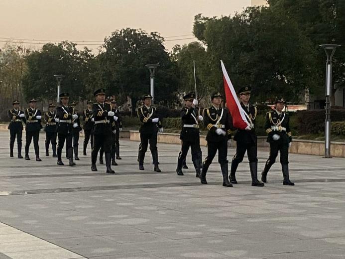 晨曦中,他们身着笔挺的制服,每一步都踏响大地的节奏,整齐划一的步伐仿佛是在与祖国的心跳同频共振。他们以无畏的目光凝视前方,那目光中饱含着对国旗的敬仰,对国家的忠诚。他们用青春和热血书写着对祖国的忠诚不渝,护卫着那抹永不褪色的鲜红,让每一个目睹的人都不禁涌起敬畏与自豪。