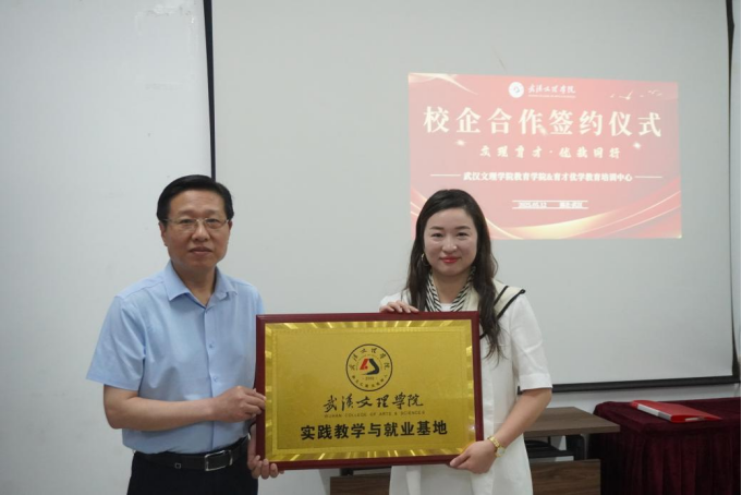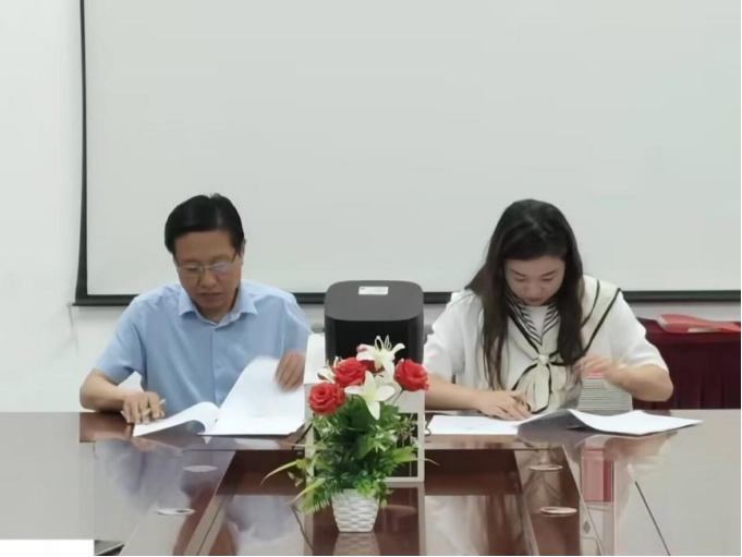 王仕杰与杨繁签订了实习教学与就业基地协议并举行了授牌仪式。