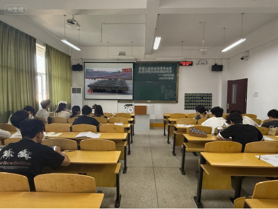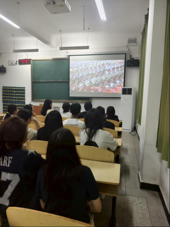 全院学生以班级为单位观看阅兵式。屏幕前,无数双年轻的眼睛专注而明亮,看着受阅部队方阵整齐划一地排列着等待检阅。跟随镜头的转换,阅兵式中向我们展示了太空、战略支援、网络空间信息等领域的新型武器装备,这些新式武器装备彰显了我国的国防科技与工业实力正朝着智能化、信息化方向发展。