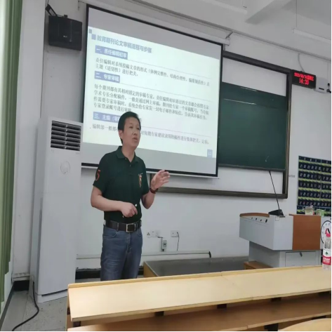 讲座伊始,王院长介绍了开展本次讲座的目的,并表示自己将从期刊审稿人的角度来讲解论文的写作与发表的过程中要注意的问题。讲座中,王院长围绕“教育期刊论文的要求”、“教育期刊论文审稿流程步骤”、“教育期刊论文写作的常见问题”、“教育期刊论文的写作与发表”四个方面,结合自己的审稿经验进行了专业、细致的分享,并针对一些写作过程中出现的常见问题,给出了自己的思考和见解。