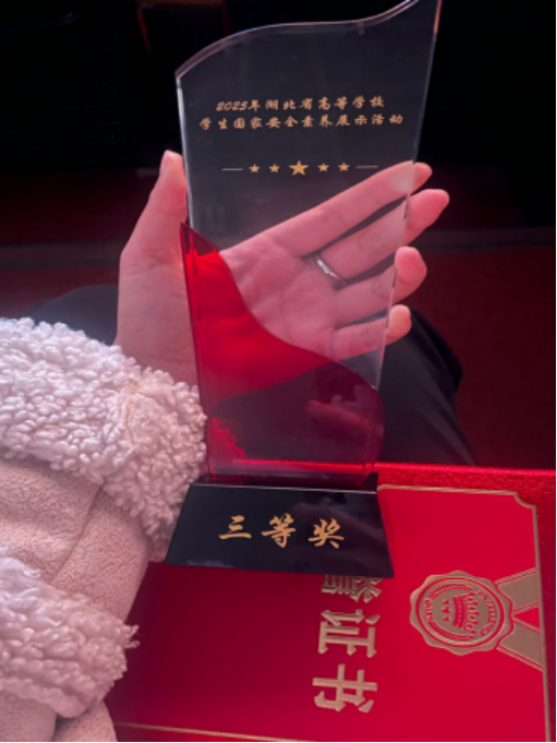 备赛期间,我校参赛团队秉持高度认真负责的态度,精心准备,通过复习题库、会议讨论、摸底考核,再进行整理错题、严格训练等多种形式与训练方法积极应对。最终在初试环节的考核中,一队(姚君格队)以606分在49支队伍中获得第10名的成绩成功闯入决赛的现场展示环节,并最终荣获2025年度湖北省高等学校学生国家安全素养展示活动三等奖。