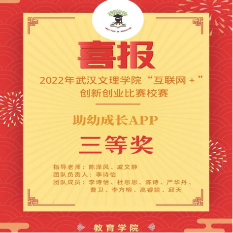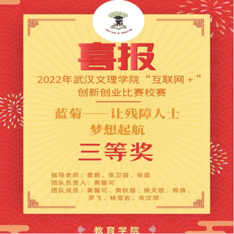 经过激烈竞争,304永利集团共有两支队伍在校赛中取得三等奖,它们分别“助幼成长APP”、“蓝菊——让残障人士梦想起航”项目。